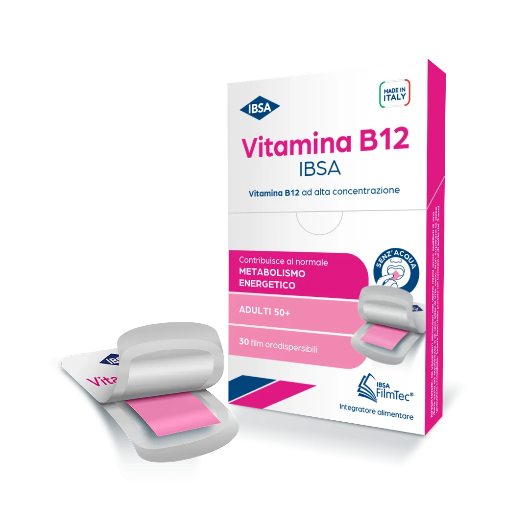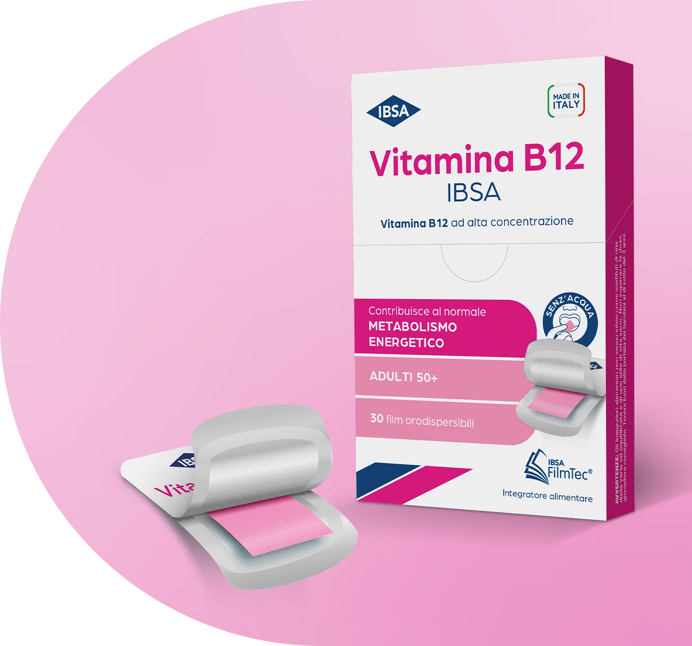 Vitamina B12 IBSA è disponibile in film orodispersibili, un modo innovativo, semplice e pratico di assumere la Vitamina B12.